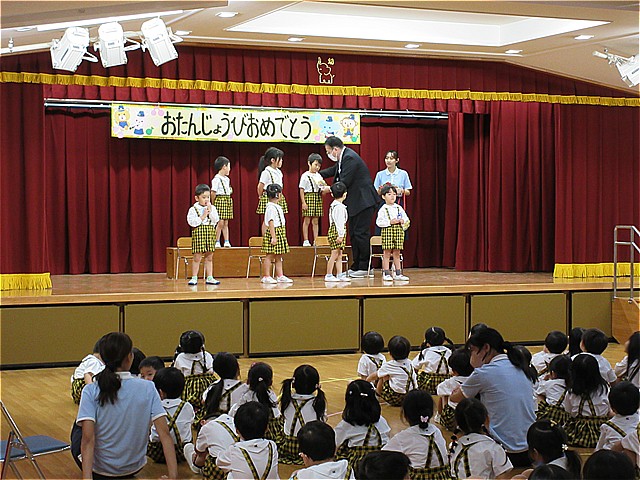 10月生まれのお友だちのお誕生会を開催しました。理事長先生からお誕生日カード…