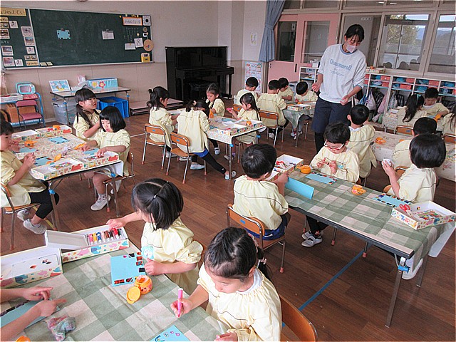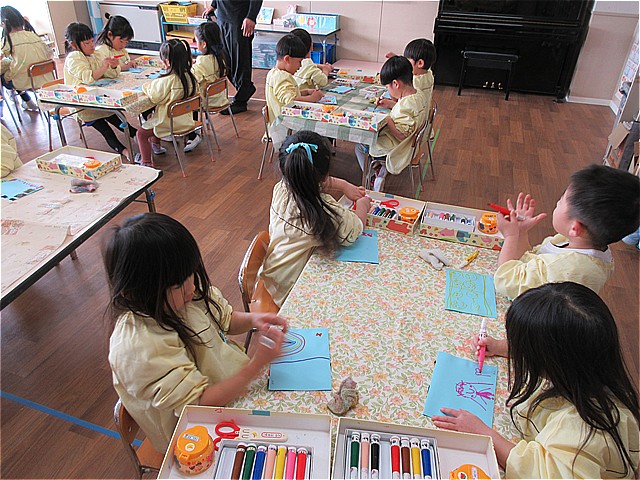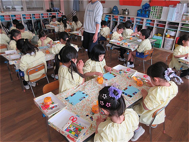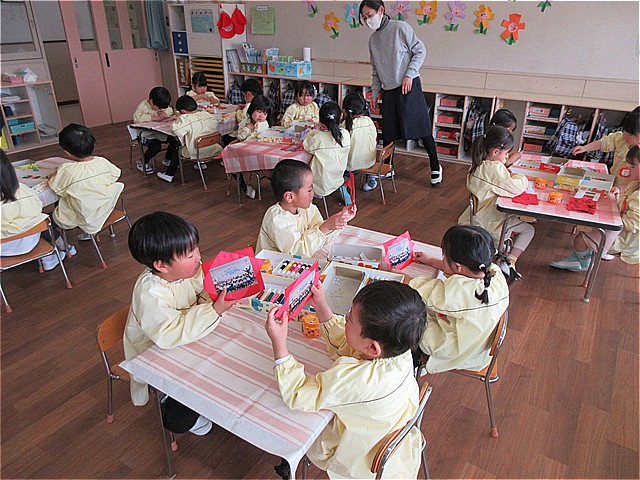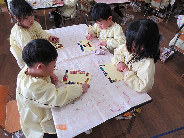 今回のわくわくデーは、お別れ制作「フォトフレーム」作りを楽しみました。年少組は、「つるして飾る写真立て」 年中組は、「布をぺたぺた手作りフレーム」 年長組は、「お花の写真立て」を作りました。美山っ子たちは、素敵な発想で、フォトフレーム作りを楽しんでいました。