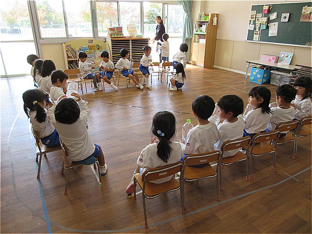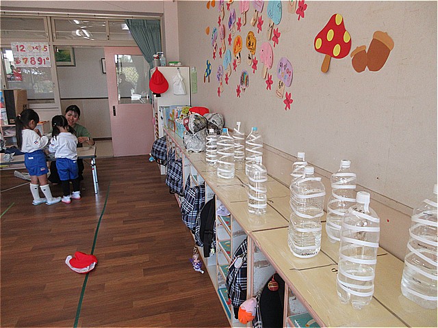 各ご家庭で準備していただいたペットボトルに水(転ばないように)を適量入れます