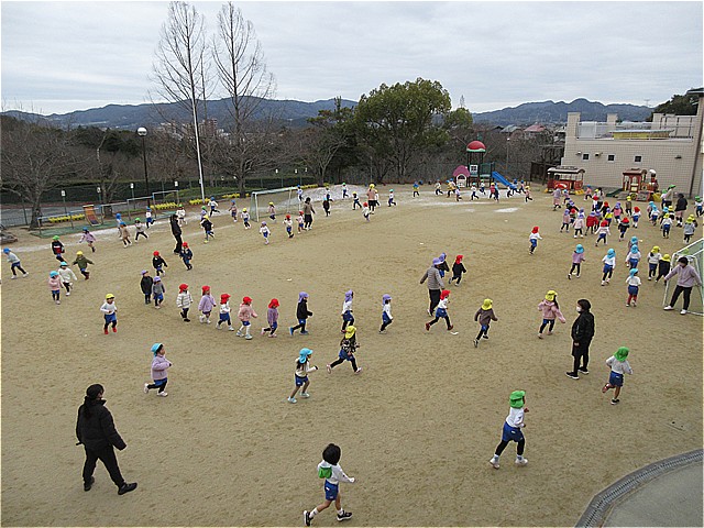 全幼稚園児が、9:30に園庭に集まり体操の後に、園庭を使ってマラソンをしました。とっても寒かったですが、元気いっぱい走りとってもいい運動になりました。保育園のお友だちも元気に園庭で遊んでいます。