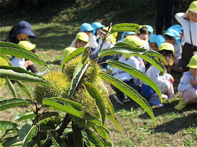 栗は、イガの中に入っているんだよ。先生が説明をしてくれています
