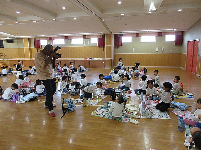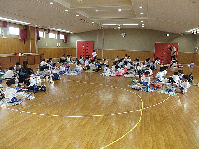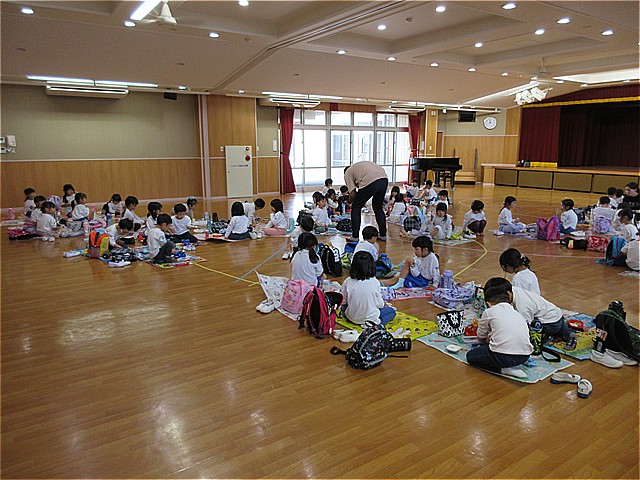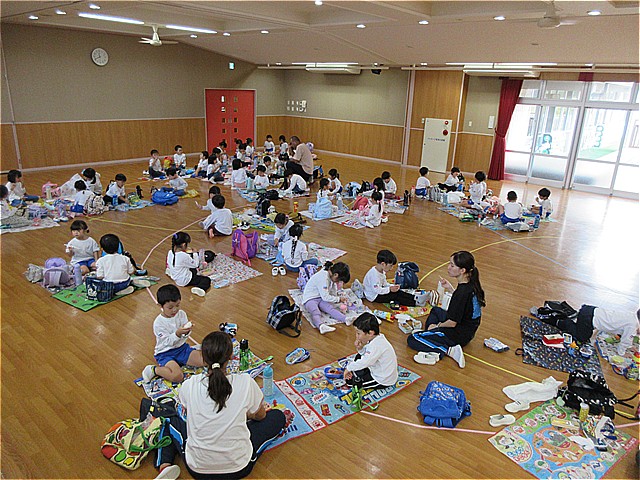 気温が上がり暑くなったので、お弁当は遊戯室で食べました
