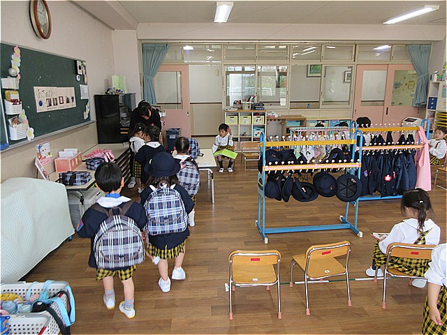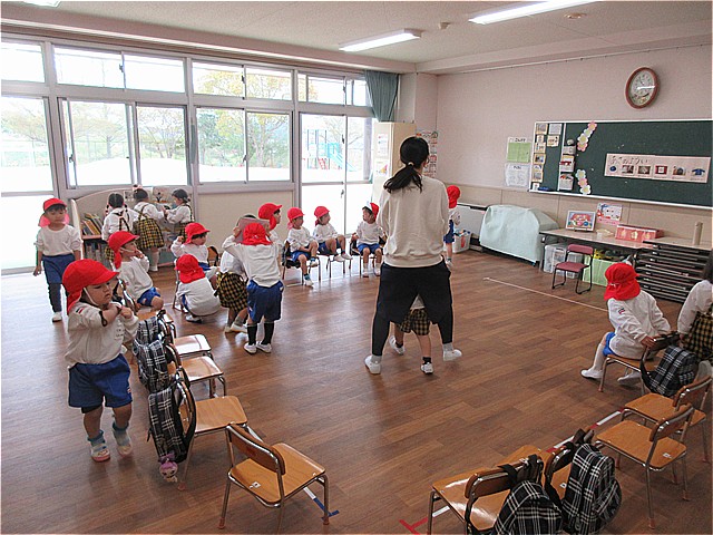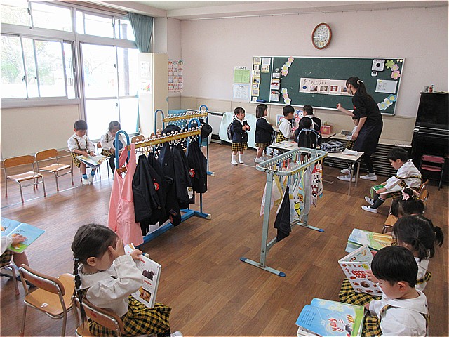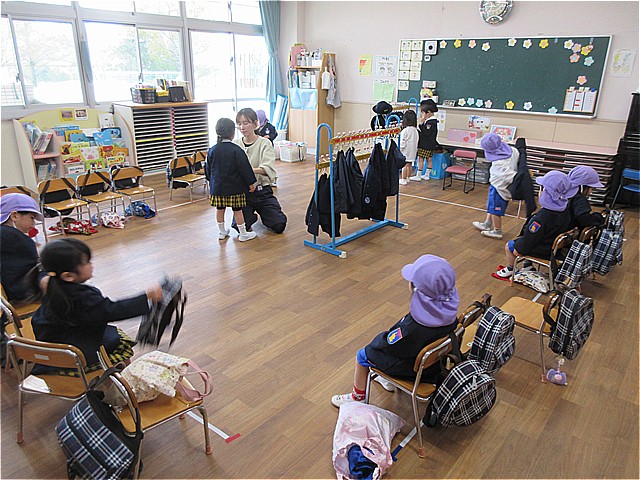 絵本を読んでもらったり、お着がえのやり方を教えてもらったら、あっという間にお帰りの時間です。(はくちょうさんに行くお友だちは、はくちょうクラブに行きます)