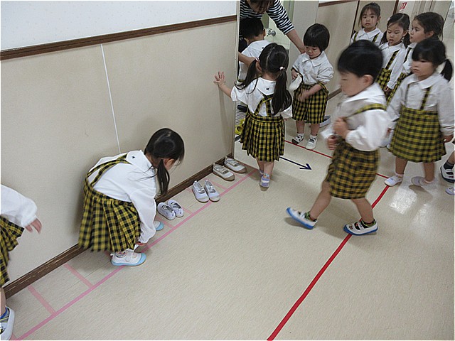 くつをきれいにそろえてトイレに行きます