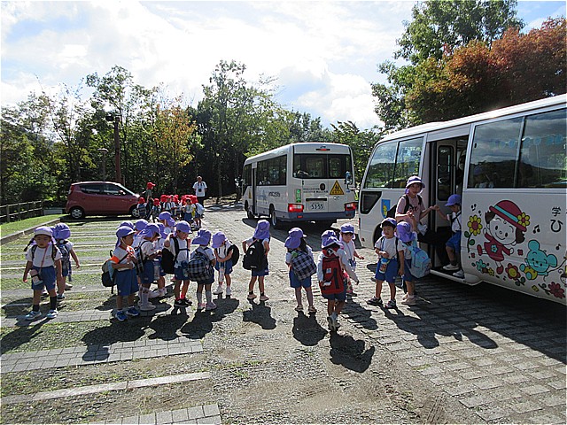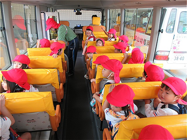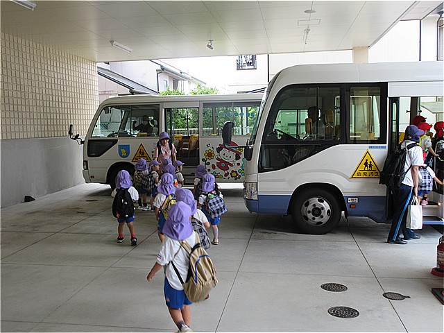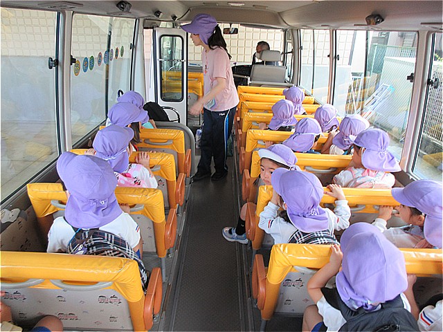 こども園バスに乗って、こども園に帰りました