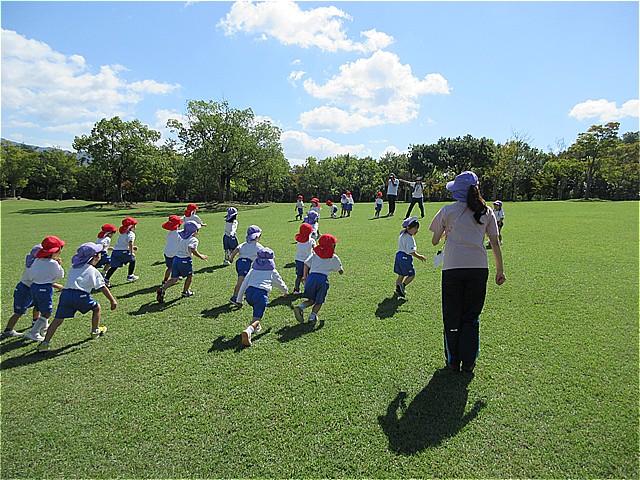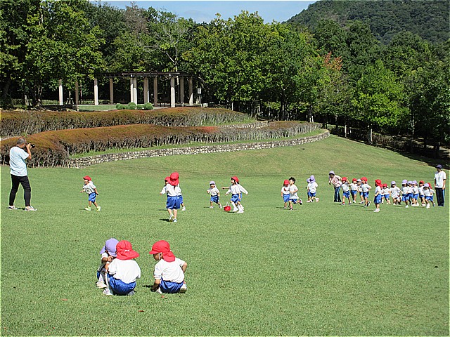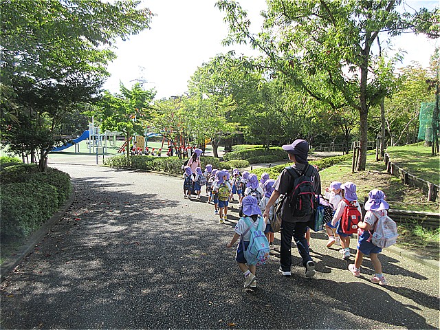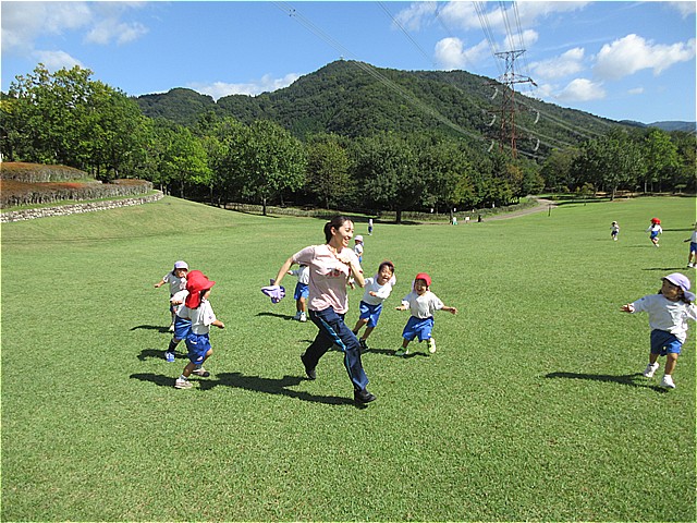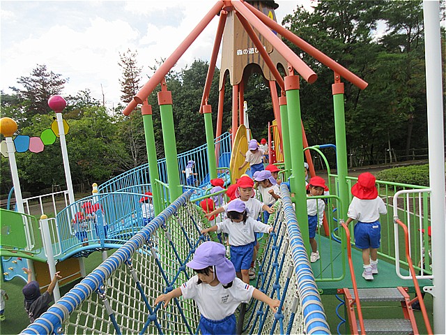 一庫公園に園外保育に行ってきました。「森の広場」の遊具で思いっきり遊びました。遊んだ後は広場に移動してお弁当を食べました。お弁当の後は芝生広場で遊びました。たくさん遊んでとっても楽しい一日でした。一庫公園は、近くて駐車場も無料ですので、今度の連休に遊びに行かれてはいかがでしょうか。