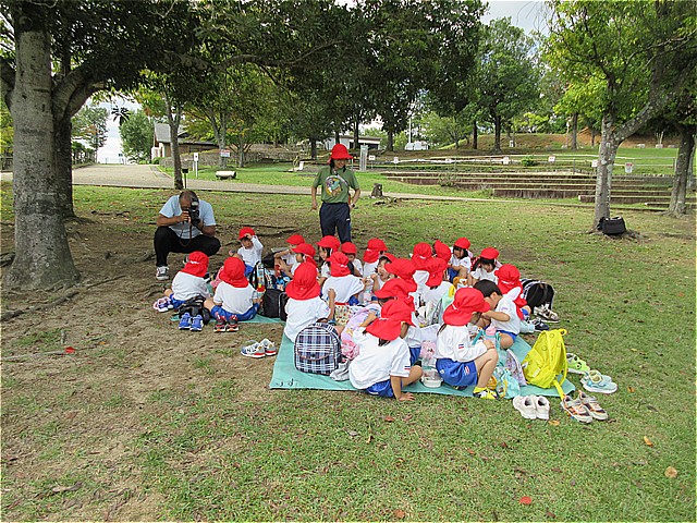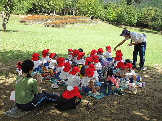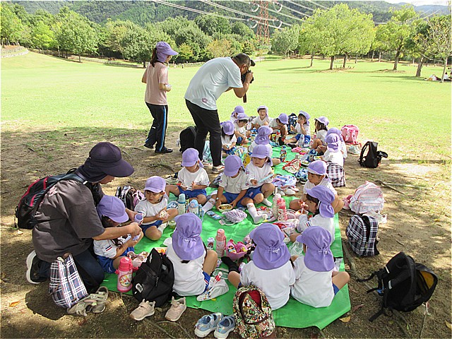 いっぱい遊んだ後は、広場に移動してお弁当とおやつタイムです