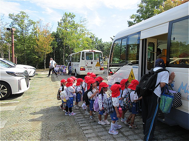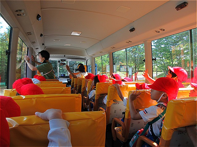 こども園バスに乗って「一庫公園」に向けて出発です