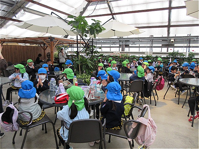 お弁当とおやつタイムです。手を合わせて「いただきます」