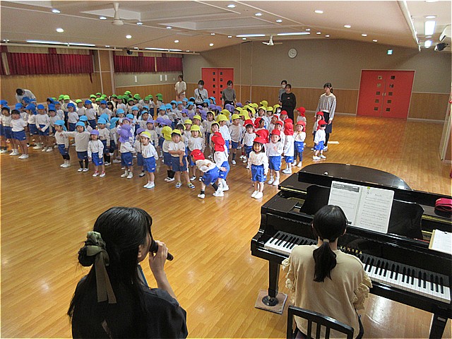最後に幼稚園のお友だち全員で、4月の歌「ぶんぶんぶん」を歌いました