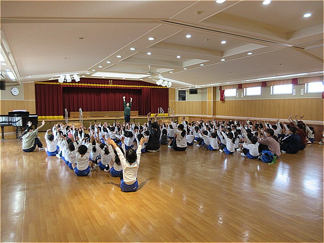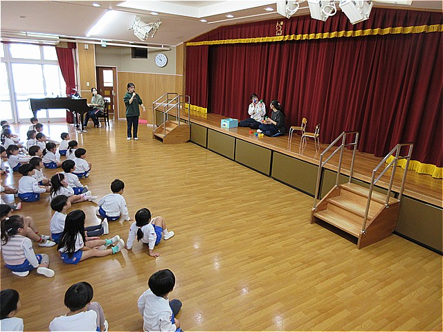最後に11月の約束「かたづけを さいごまでがんばりましょう」を先生の演技を入れて説明しました