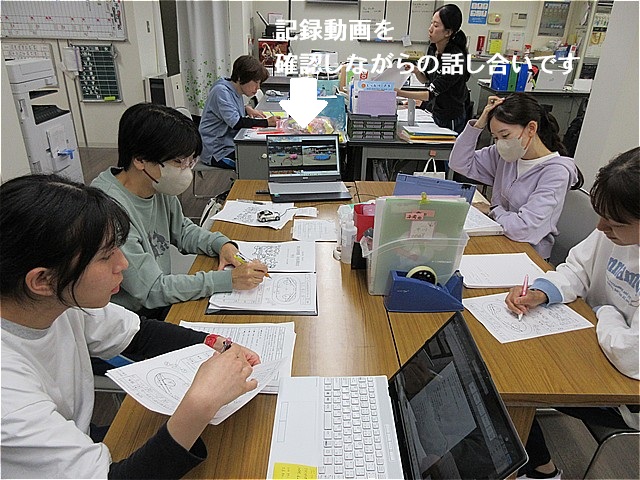 21日に全学年 運動会予行を行いました。園児降園後、各学年ごとに、予行の映像を見ながら、改善点を話し合いました。本番に向け頑張っています。
