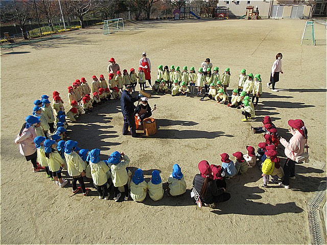 保育園の てんとうむし組、ちょうちょう組のお友だちも見学です