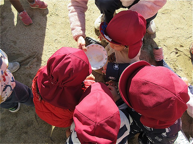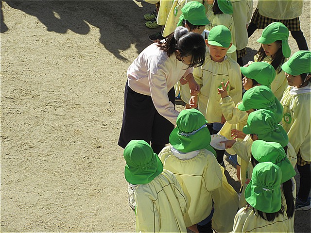 りす組 くま組 らいおん組 グループの見学です 保育園のかぶとむし組さんも見学です
