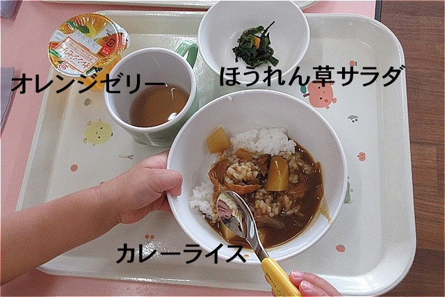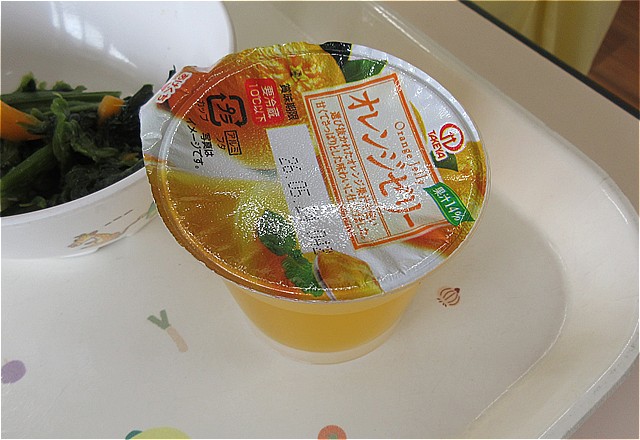 幼稚園の給食にはお誕生日デザートのオレンジゼリーが付きました