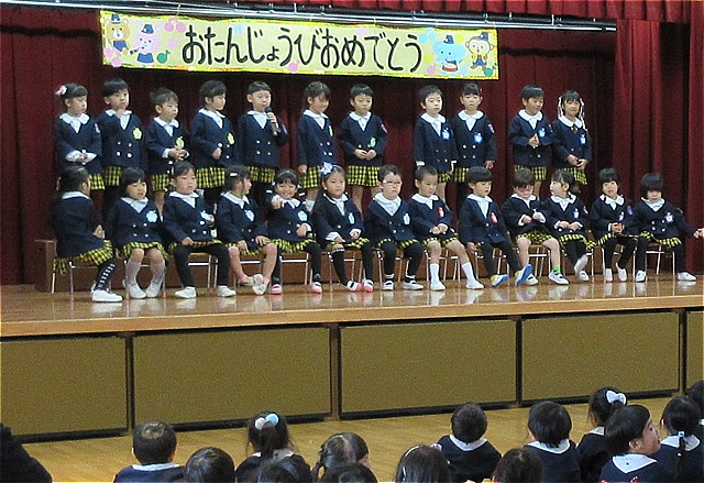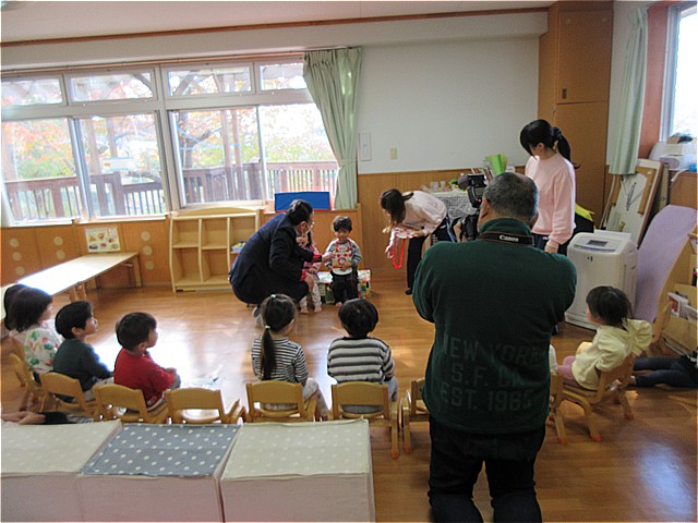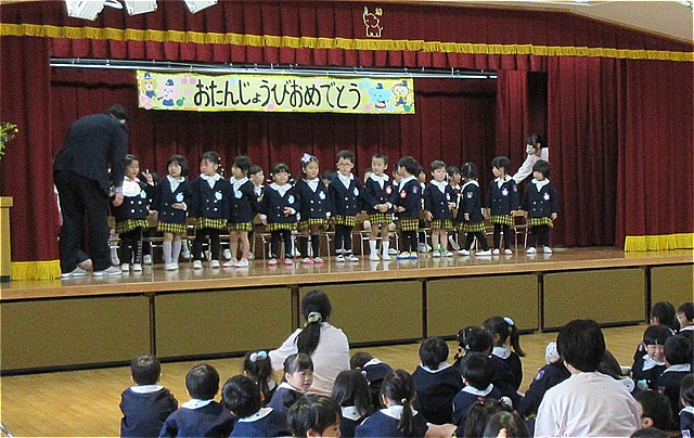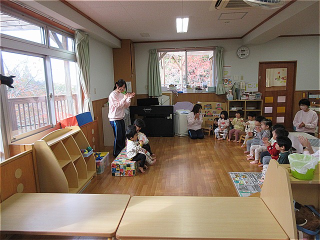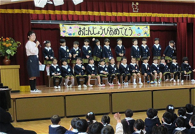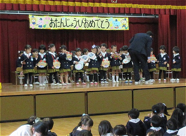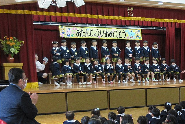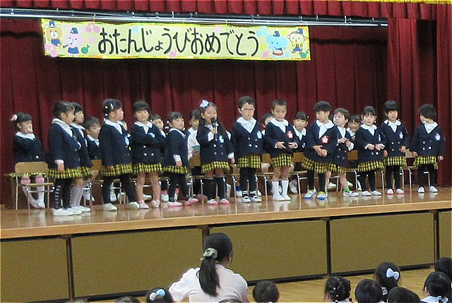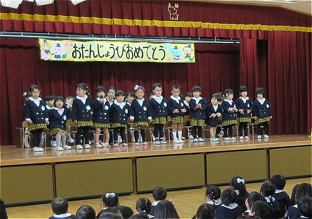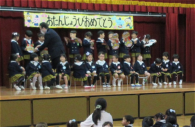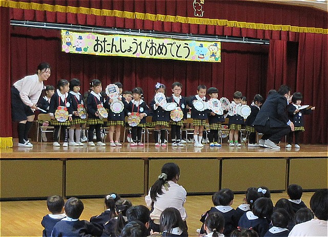 11月生まれのお友だちのお誕生日会を開催しました。保育園は保育室で、幼稚園は遊戯室で保護者の皆さんを招待して開催しました。理事長先生からお誕生日カードをプレゼントしてもらい、お友だちから拍手と言葉のプレゼントをもらいました。11月生まれの皆さんおめでとうございます。