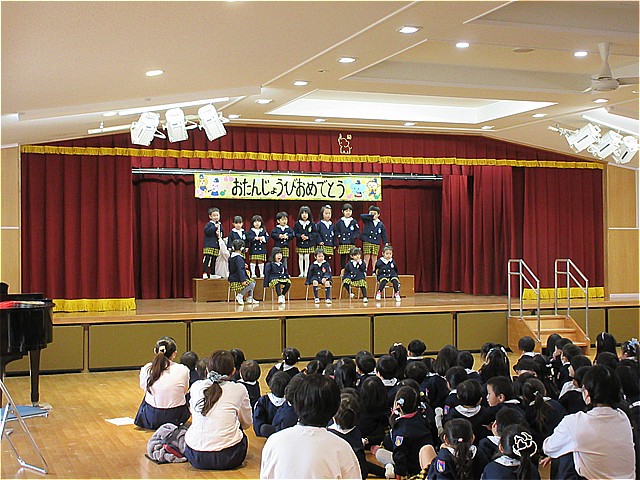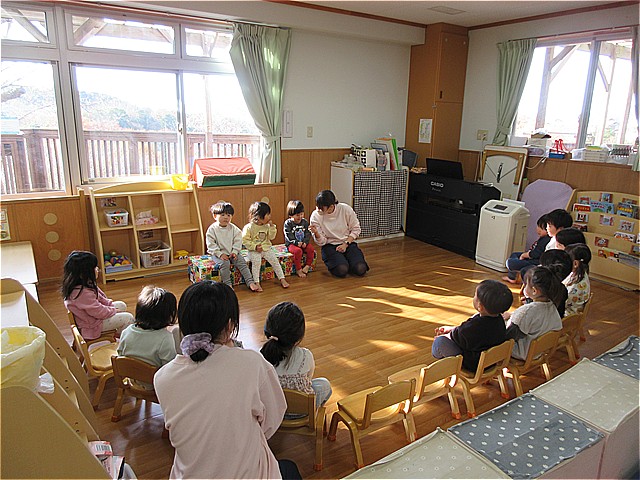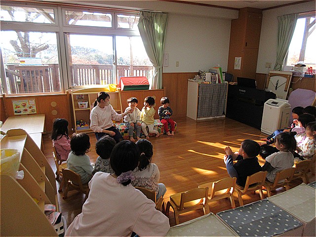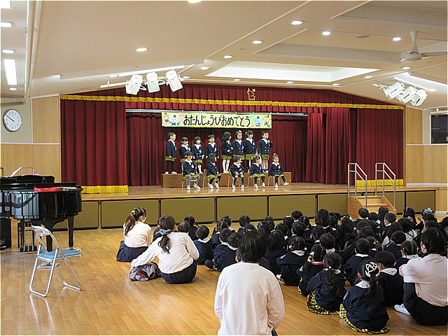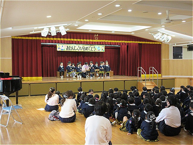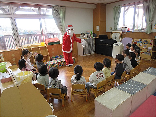 12月生まれのお友だちのお誕生会を開催しました。保育園は保育室で、幼稚園は遊戯室で保護者の皆さんを招待して開催しました。園長先生からお誕生日カードをプレゼントしてもらい、お友だちから拍手と言葉のプレゼントをもらいました。12月生まれの皆さんおめでとうございます。