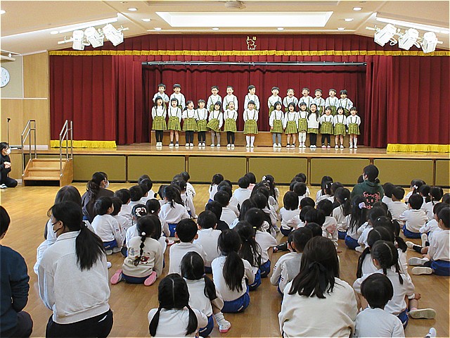12月1日(月)に「朝のあつまり」を実施しました。年中組のやぎ組さんが合唱の…